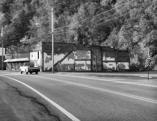 HARD TRUTHS photographs were all taken in McDowell county, WV. I grew up in Clarksburg, WV in a time when Main streets throughout the state were the hubs of the cities. Before Facebook, Twitter, Instagram, etc., people would gather around the Court House steps or any of the local stores (pre malls in small town WV). In those days, there were factories and mines supporting the towns. They are all gone now. Factories moved to other countries and mines shut down due to mine owner’s greed and government corruption, machines took the place of hundreds of miners. Being a fine art photographer, I support clean environment in every way, however, nothing was done to clean up the factory and mining exhaust and lethal leftovers. Factory workers and miners were just doing their jobs in a vey unsafe environment.